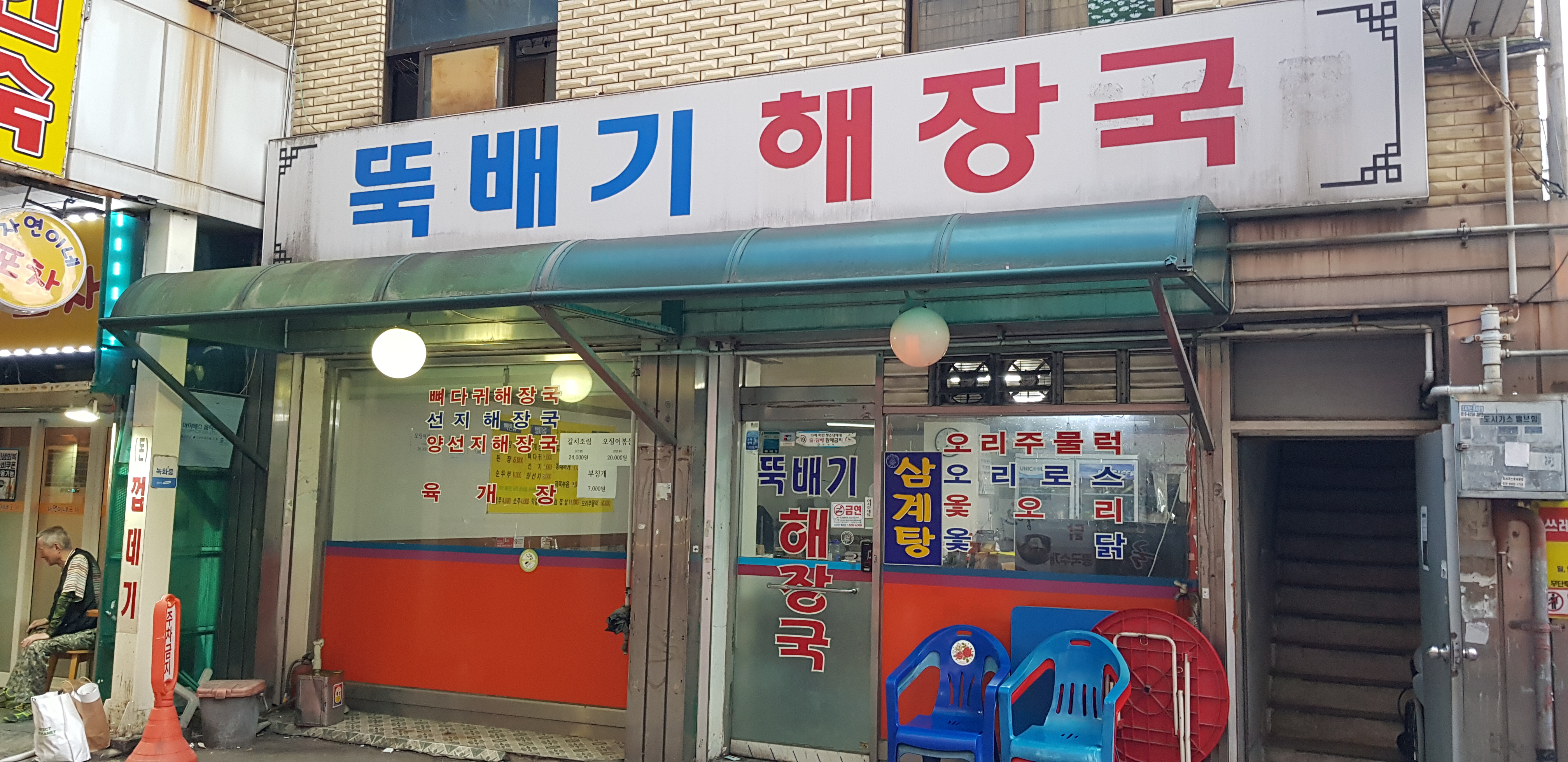 뚝배기해장국은 3000원 된장찌개, 순두부찌개와 반찬 무한리필부페로 유명한 믿음식당에서 조금만 더 내려오면 보인다. 2800원 해장국으로 유명한 남부정육점도 근처에 있다.