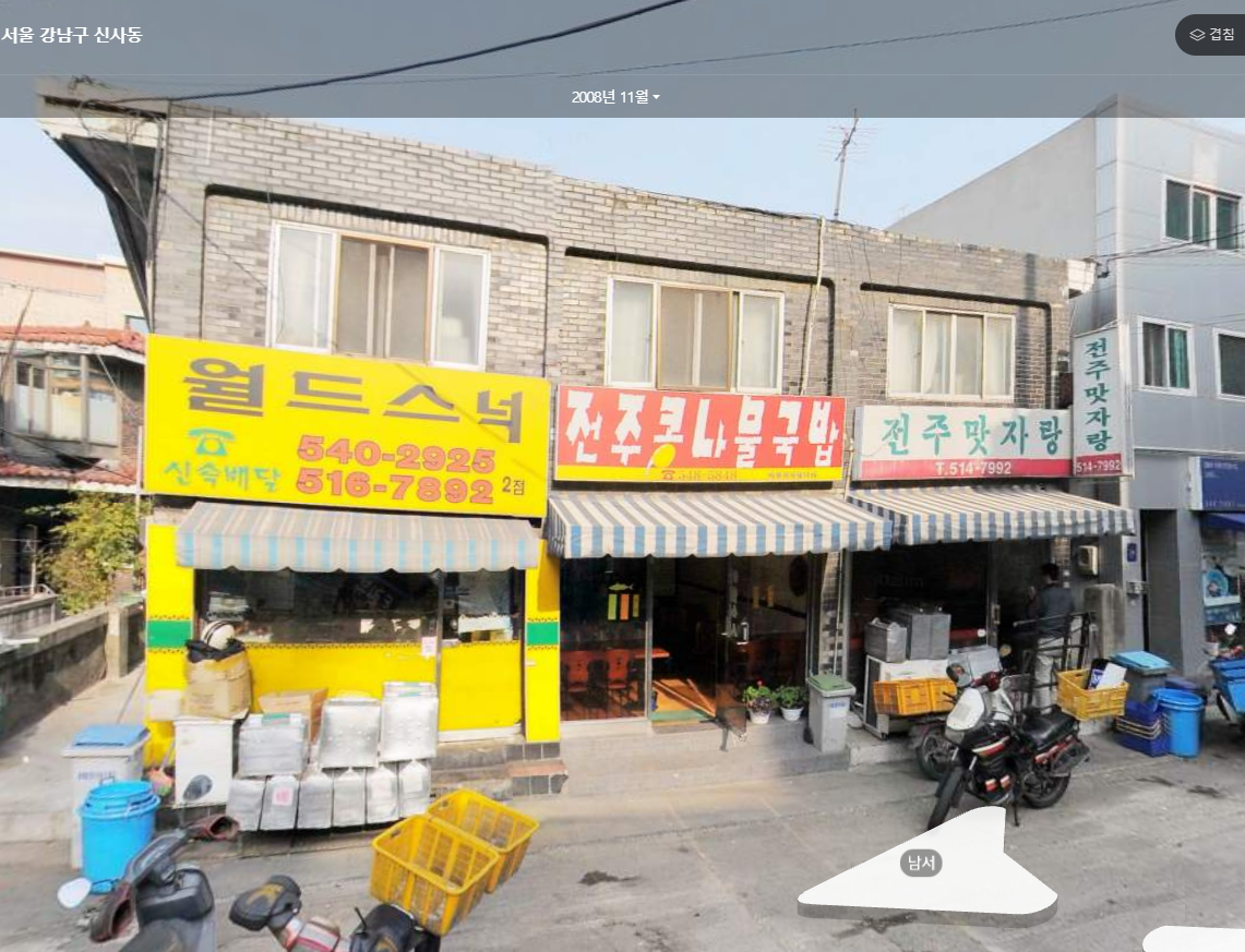 가게 외관이 업력을 느낄 수 있다. 무려 2008년 로드뷰에서도 가게가 보인다. 20년이 다 되어가는 강남구 신사동 맛집이다.