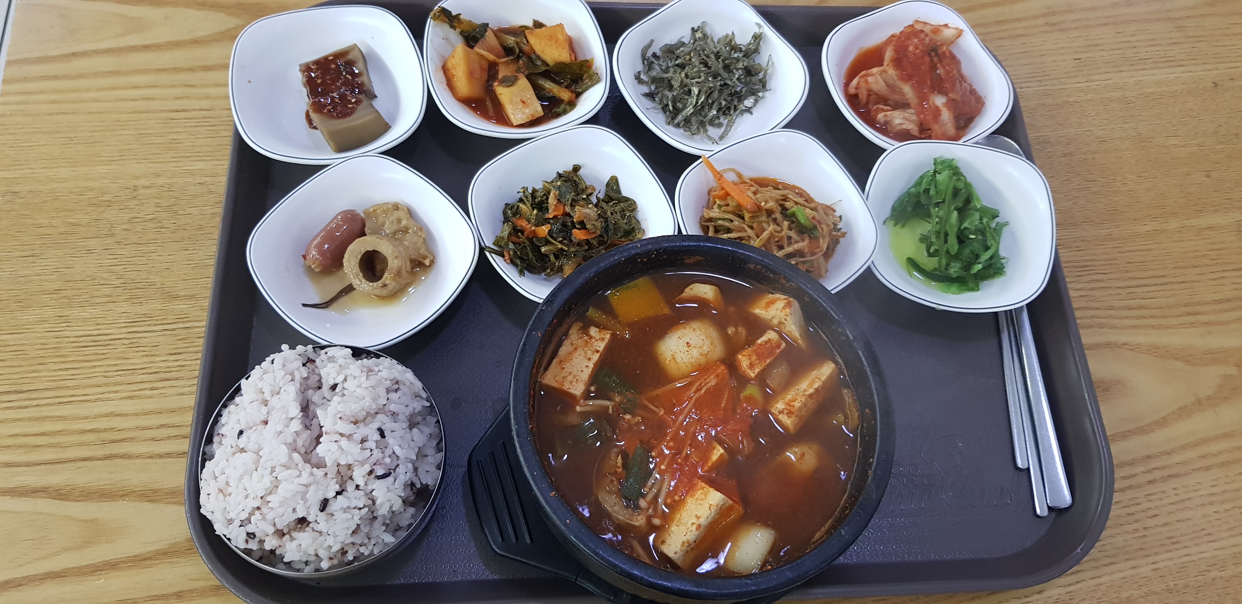 찌개 메뉴(순두부,된장,김치,부대)를 주문하는 손님이 많았다. 큼지막한 뚝배기에 찌개가 8가지 반찬과 함께 나온다.