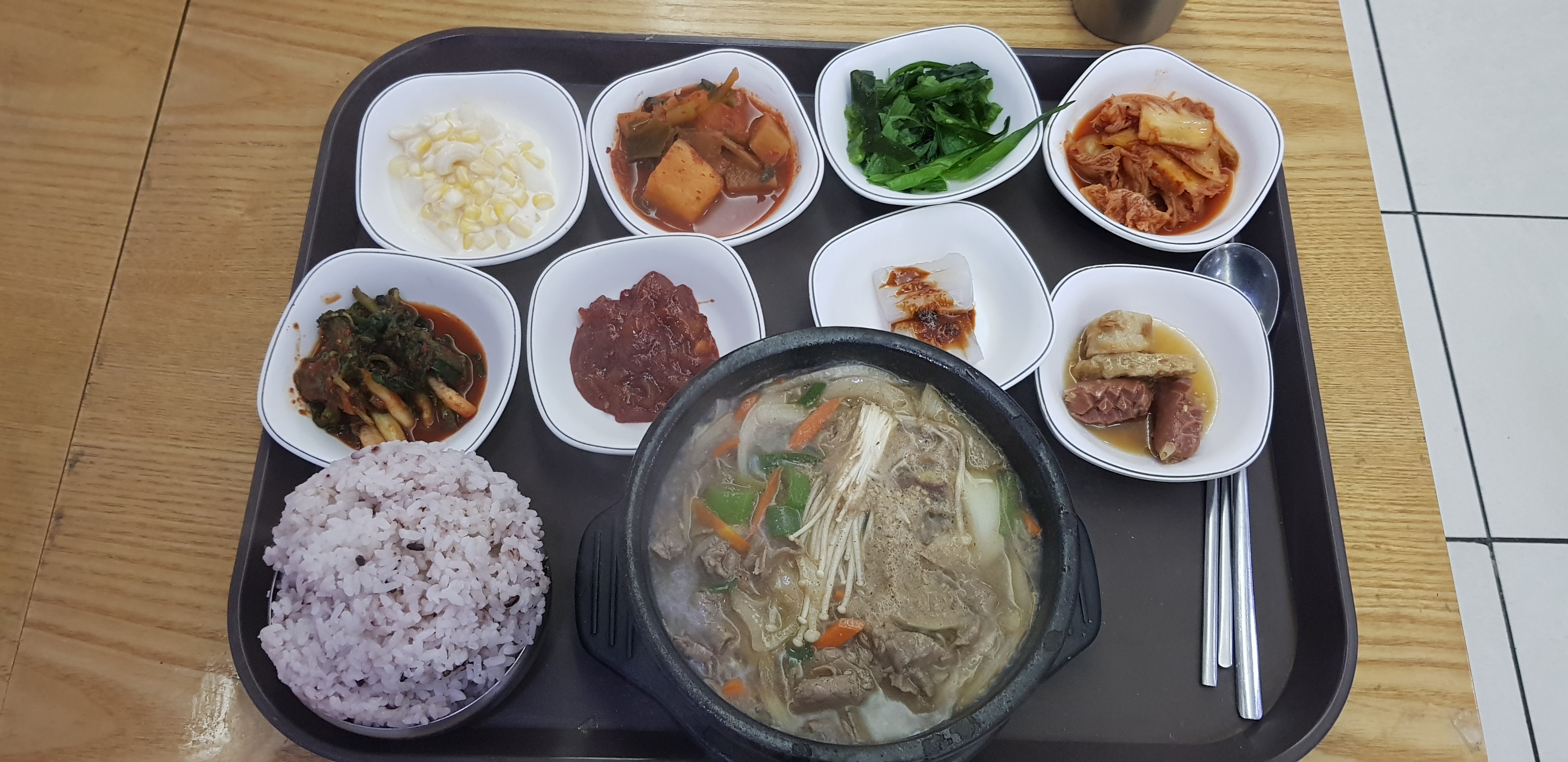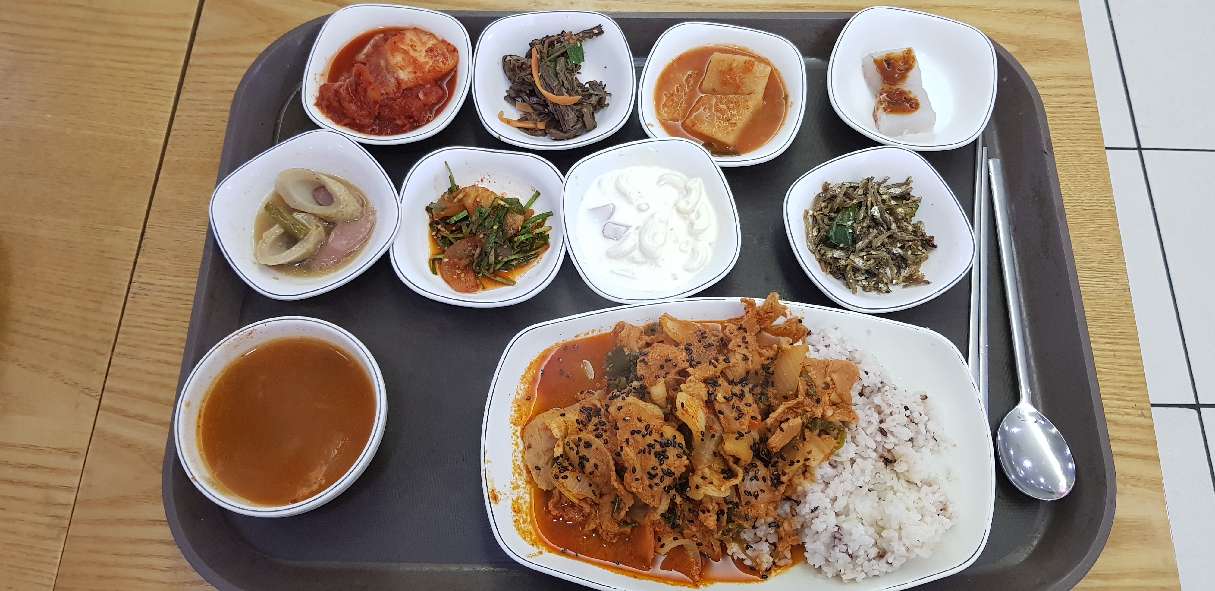 밥도 많이 달라고 하면 넉넉히 주신다. 반찬이 매번 조금씩 변화가 있다. 먹다 보면 식재료가 매우 신선하다고 느끼기는 어렵다. 하지만 충분한 양과 저렴한 가격이 모든 걸 잊게 해 준다.