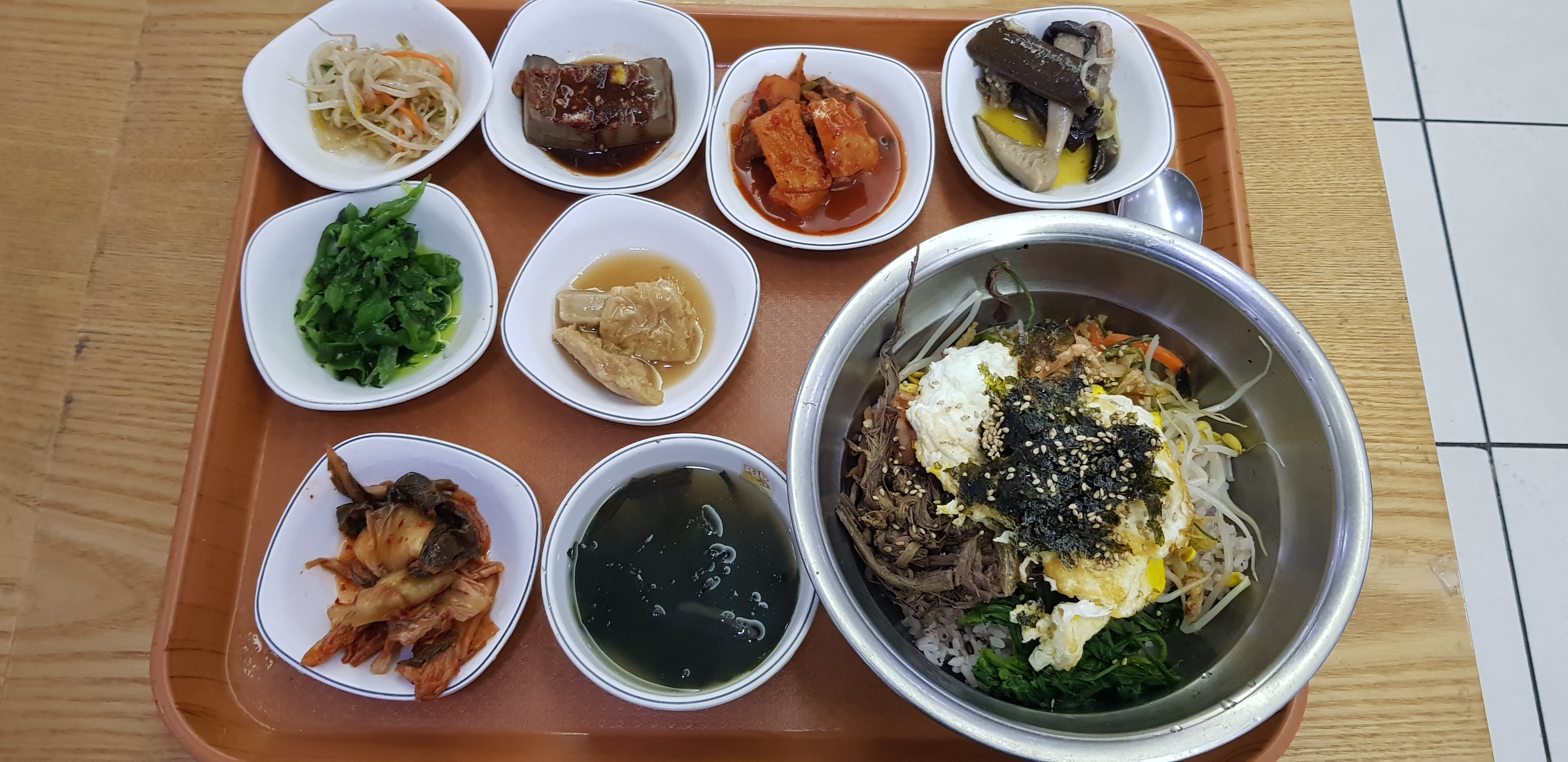 메뉴가 다양하고 저렴하다. 소내장탕, 설렁탕, 갈비탕, 순대국 등은 주문이 가능한지는 모르겠다. 찌개나 덮밥류가 좋은 선택일 것이다. 양푼비빔밥의 가격이 단돈 3500원이다. 비빔밥과 국, 반찬 8가지가 나오는 구성일 것이다. 저렴하게 먹는다면 양푼비빔밥이나 찌개 메뉴를 고르면 될 듯하다. 고기를 먹어야겠다면 제육이나 오삼불고기, 소불고기 정도가 가성비 메뉴일 것 같다.
