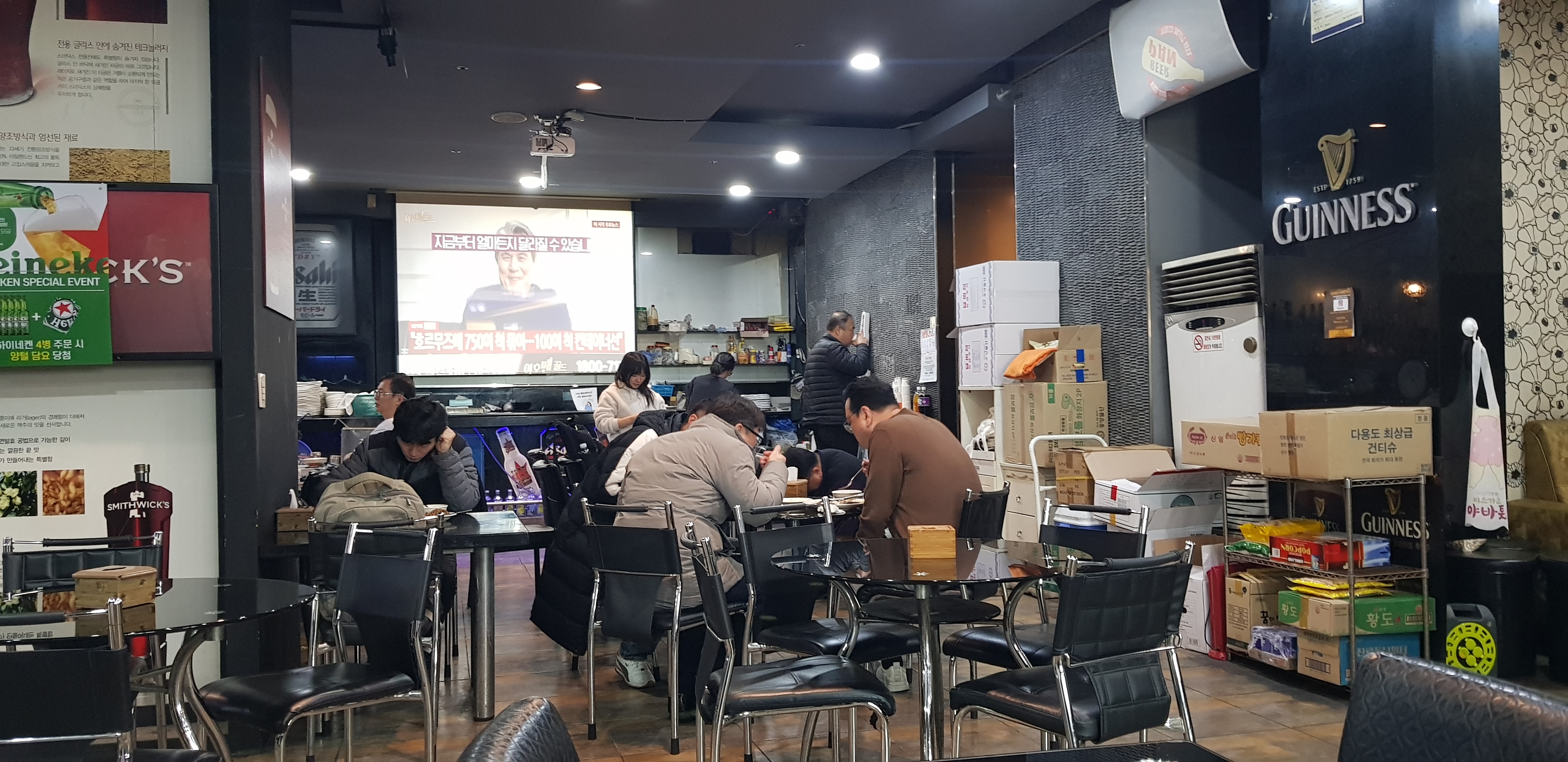 호프집이라 좀 어둡다. 좌석은 충분하다. 피크 시간이 아니라면 대기할 일은 없을 것 같다.