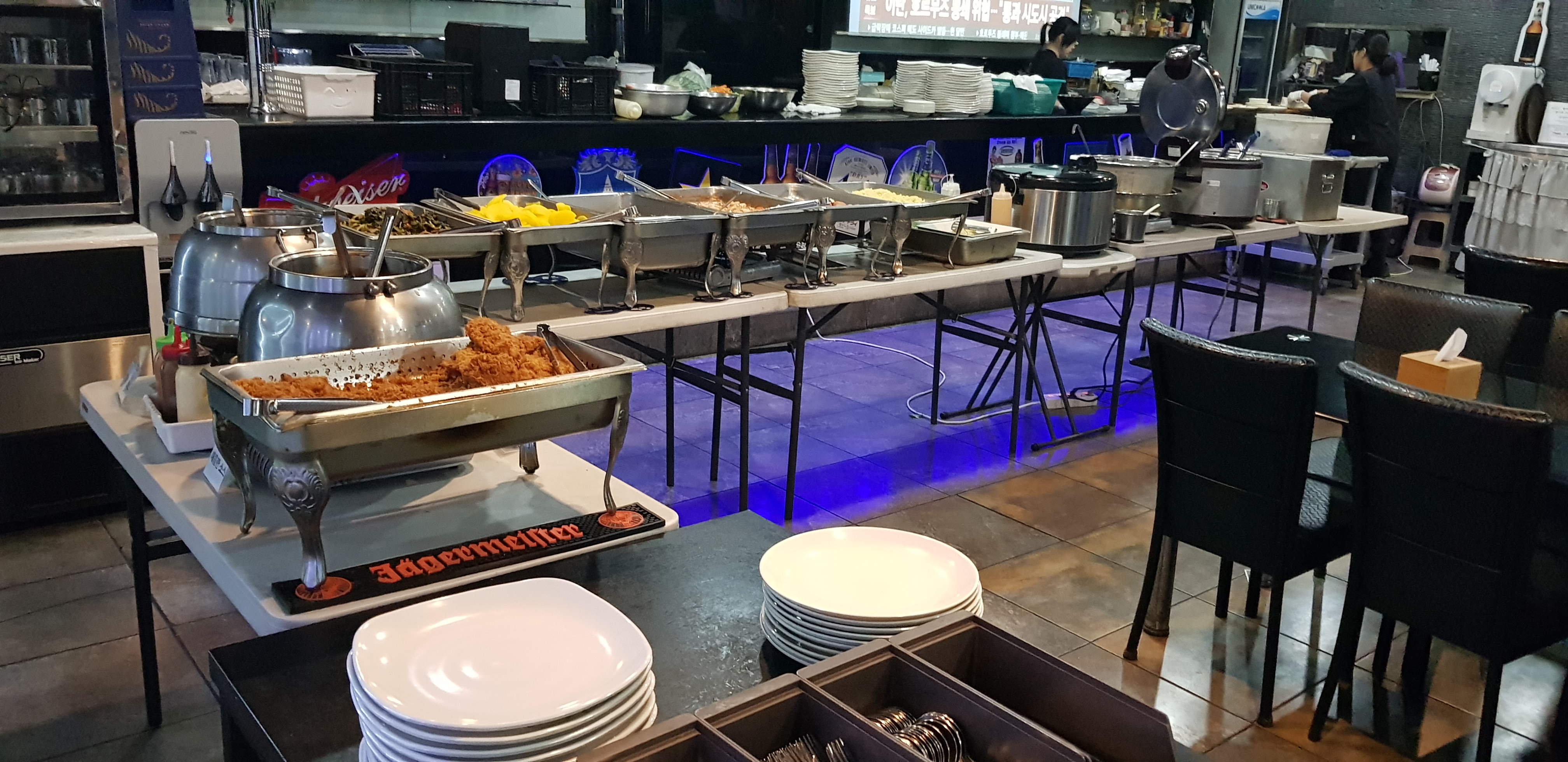 오전 11시부터 오후 2시까지 돈까스가 기본 무한리필 부페로 제공된다. 그 외 시간은 호프집으로 운영된다.