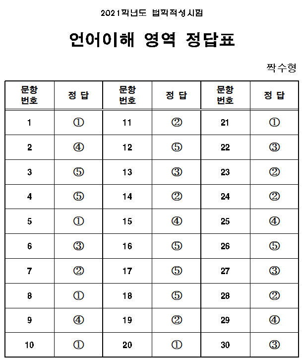 2021학년도 법학적성시험 언어이해 영역 정답
